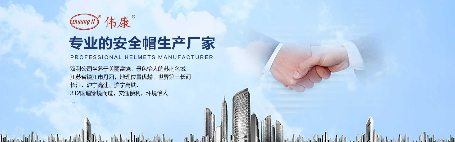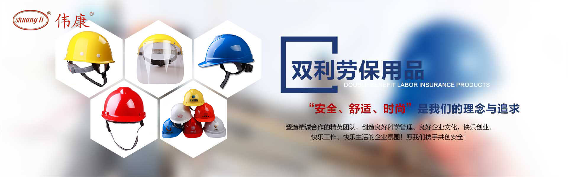 專業(yè)的安全帽生產(chǎn)廠家-鎮(zhèn)江市雙利勞保用品有限公司。雙利公司坐落于美麗富饒、景色怡人的蘇南名城——江蘇省鎮(zhèn)江市丹陽,地理位置優(yōu)越、世界第三長河——長江、滬寧高速、滬寧高鐵、312國道穿境而過,交通便利,環(huán)境怡人。鎮(zhèn)江市雙利勞保用品有限公司是鎮(zhèn)江市第一家創(chuàng)辦的專業(yè)生產(chǎn)安全帽的生產(chǎn)商,并申請擁有自己的品牌:shuangli牌和偉康牌,立足致力于安全帽研究,從原料入手研發(fā)出韌性更強(qiáng)、抗沖力更高的特點(diǎn)。公司根據(jù)實(shí)際運(yùn)行需要建立高效、務(wù)實(shí)、有序的組織機(jī)構(gòu),實(shí)現(xiàn)現(xiàn)代化公司管理。同時公司具備專業(yè)完善的生產(chǎn)設(shè)備和成熟的安全帽生產(chǎn)工藝及先進(jìn)的檢測儀器,為產(chǎn)品的質(zhì)量奠定了堅(jiān)實(shí)的基礎(chǔ),各項(xiàng)技術(shù)指標(biāo)均達(dá)到國家《GB2811-2019》《安全帽》標(biāo)準(zhǔn)。產(chǎn)品廣泛適用于建筑、林業(yè)、石油、石化、造船、港口、冶金等行業(yè)。 “安全、舒適、時尚”是我們的理念與追求,塑造精誠合作的精英團(tuán)隊(duì),創(chuàng)造科學(xué)管理、良好的企業(yè)文化,快樂創(chuàng)業(yè)、快樂工作、快樂生活的企業(yè)氛圍!愿我們攜手共創(chuàng)安全!
